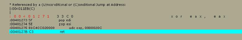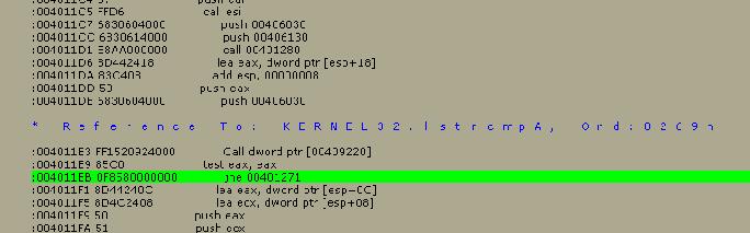 third line is then jumping to location 00401271 if the two codes are not equal.
