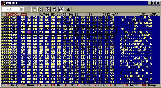 still left W32Dasm open when I patched startclean, so the code is still