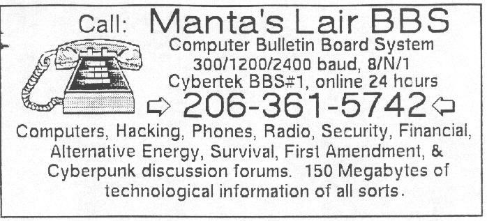 A lot of articles from the first issues were originally placed on The Net back in the early 1990s complements of Brian Oblivion and Count Zero, formerly of the l0pht. I've begun to scan in some of those early issues so people can get a better sense of how the 'zine was. There were also some articles and graphics from those issues that never made it to The Net until now.
