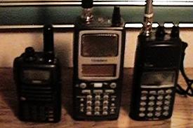 Left: Yaesu FT-50 dual-band ham HT, Uniden BC-250D scanner (APCO P-25 & trunking capable), Icom R-10 communications receiver (from LtoR)