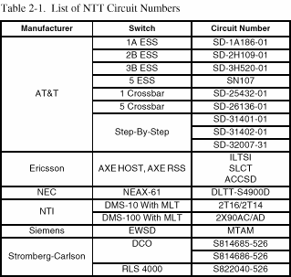 - List of NTT Circuit Numbers.