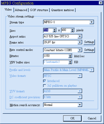 - Load VCD profile (choose NTSC/FILM for Deinterlace/IVTC)