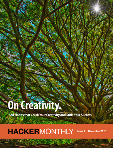 This year's final issue features "Bad Habits that Crush Your Creativity and Stifle Your Success" with the beautiful Banyan Tree (taken by Randy Kepple) on the cover. In accordance with our recently launched students program, we have "How Universities Work" and "How To Get a Job At a Kick-Ass Startup." Also, give it a try on "Building an Open Source Dropbox Clone" and "Setup Your Own Private Git Server on Linux."