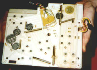 Als je het frontpaneeltje er af schroeft krijg je een printplaat te zien met