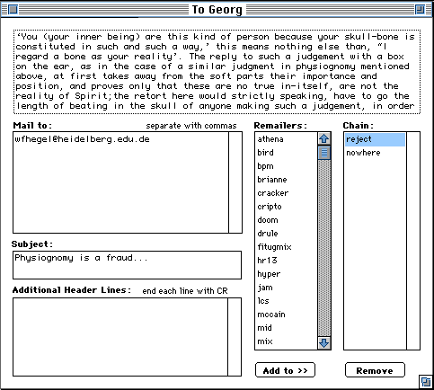 To send this cyphertext to an anonymous remailer, you must edit this message, cut and/or paste it to a e-mail program.