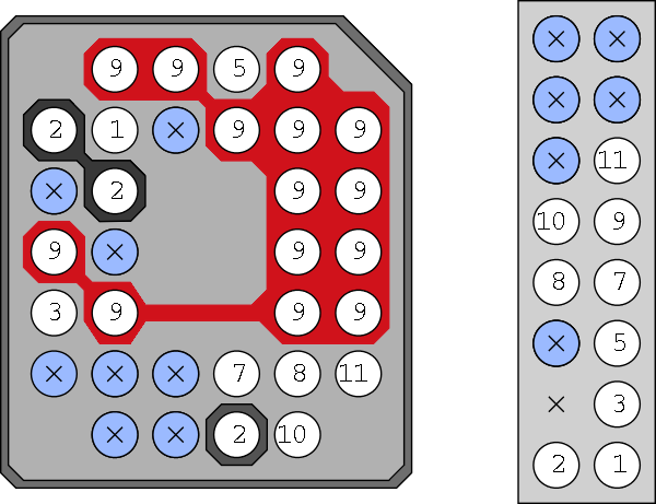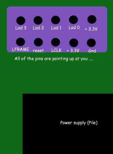 This is very clear and useful, then, it means that you can program Cheapmods using the Matrix programmer by making a small adapter. Here is the correspondence between the named pins on Max's diagram, and the numbered LPC connector pins at the top of this page