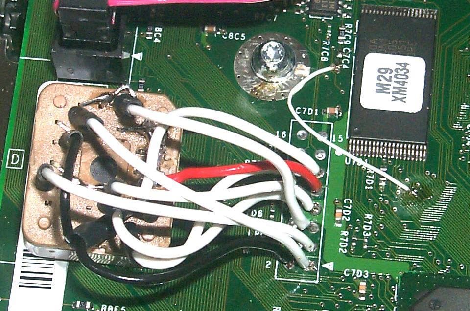 Now thanks to Max you can blow Cheapmods on your Matrix programmer. :-) Cadfael's PCB and switchCadfael (cad.fael@laposte.net) has sent the following nice pictures in from France, with a note:Andy, For the beginning I want to say that all the benefits must be sent to you for your wonderful tutorial on 'How build your homebrew LPC mod' and to Viperman from Xboxhacker for is modchip pcb. Many thanks to you. I was just concern on an easy way to plug and remove my modchip so I decided to use a pin header system to connect my modchip on the motherboard. This is just an extension to the tutorial mentioned before. It worked for me and I just want to bring my very very little stone to the scene. The only drawback is that you have to completely remove the motherboard to weld the pin header on the underside but it is a far better solution than wires (and also I think than the no solder pogo pins). It is stable, quick and easy to install, the mod can be removed with ease and replaced in seconds. No alignment, no setting up. The main benefit is that once your pin header is fitted you NEVER need to solder ANY mod into your XBOX ever again! Note also that the v1.1 consoles LPC holes are not filled in so it’s easier, just plug the header in and you're connected within minutes. For the patch wire, I chose to use the point 2 (GND) of the LPC connector cause like that I had only one 'difficult' point to weld on the motherboard instead of 2 (D0 and south side of C7C4) You can notice that I have also put a switch on the patch wire so I can easily turn on/off my modchip and boot on MS original bios or on my 'underground' one. Works fine too. I used the PCB of Viperman (works fine) with a pin header block and PLCC support for my chip. After programming my chip I only have to plug my chip on the motherboard. I sent you some photos, I suppose that it should be enough have a good idea of all the steps of my 'procedure'. Best regards from a french guy. |