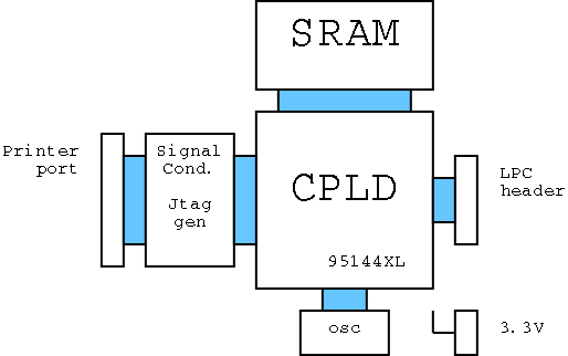 The need the device fulfils is to facilitate rapid debug and communication with an LPC-enabled host and a PC. The design schematics, gerbers and C & VHDL sources are being released under the GPL, others are encouraged to duplicate our design when it is proven. However, as with all GPL projects, no warrenty at all is given about the performance of this design. It might do anything up to and including destroying the planet you are on if you build one. However I believe it will eventually perform as suggested. Overview