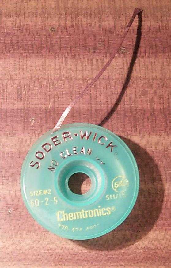 Another mysterious manifestation of the Hand of Numbnut guides us on our way. A sign! Make sure you allow some excess braid at the end, the solder will travel up it. Step 6: Suck up the excess solder with the braidYou gently - GENTLY - head the braid without placing pressure on the pins. If there is difficulty melting the solder through the braid, melt a little bit of solder on your side of the braid to help with the initial heat conduction.Run the hot iron along the braid, the solder will leak up into the braid leaving lovely clean joings without shorts. You may need to hit it with multiplepieces of clean braid to get it completely clean. What you do NOT want to do is start tugging to get the braid off because the solder has solidified. Back off, let it all solidify and run the iron over it again - without pressure - to get the solder molten and the braid moving again. When its done, it looks like this: