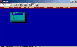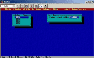 When you make a flash you must take in mind 4 parameters, mobile phone model, phone software version (sw), flash memory type (INTEL, ATMEL, INTEL 28F160) and start address where to start to flash. First thing you must do is select the type of memory, you can choose INTEL, but if you try and it not works you can try the with ATMEL or INTEL 28F160.