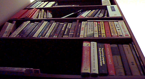 ![]() Quite a while ago, Pam catalogued every book laying around Notwork. While this list is quite out-dated at this point, the colon-delimited database is available, and can be searched below. |
