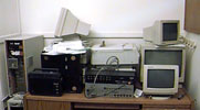 The Notwork Fallout Shelter is our collection of equipment still in the process of being brought back to life. We have so much old stuff, we don't even know what's in there. Between the Kaypro, TRS-80, Apple II-E's, Commodores, and even and old SPARC or two, the Fallout Shelter is really a treasure trove. Anyone around Notwork looking for a restoration project, or some low-tech tinkering, heads straight for the fallout shelter... or sometimes the MUSEUM. |