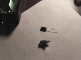 on the top is a 10uf electrolytic capacitor (RS part #272-1025). The little