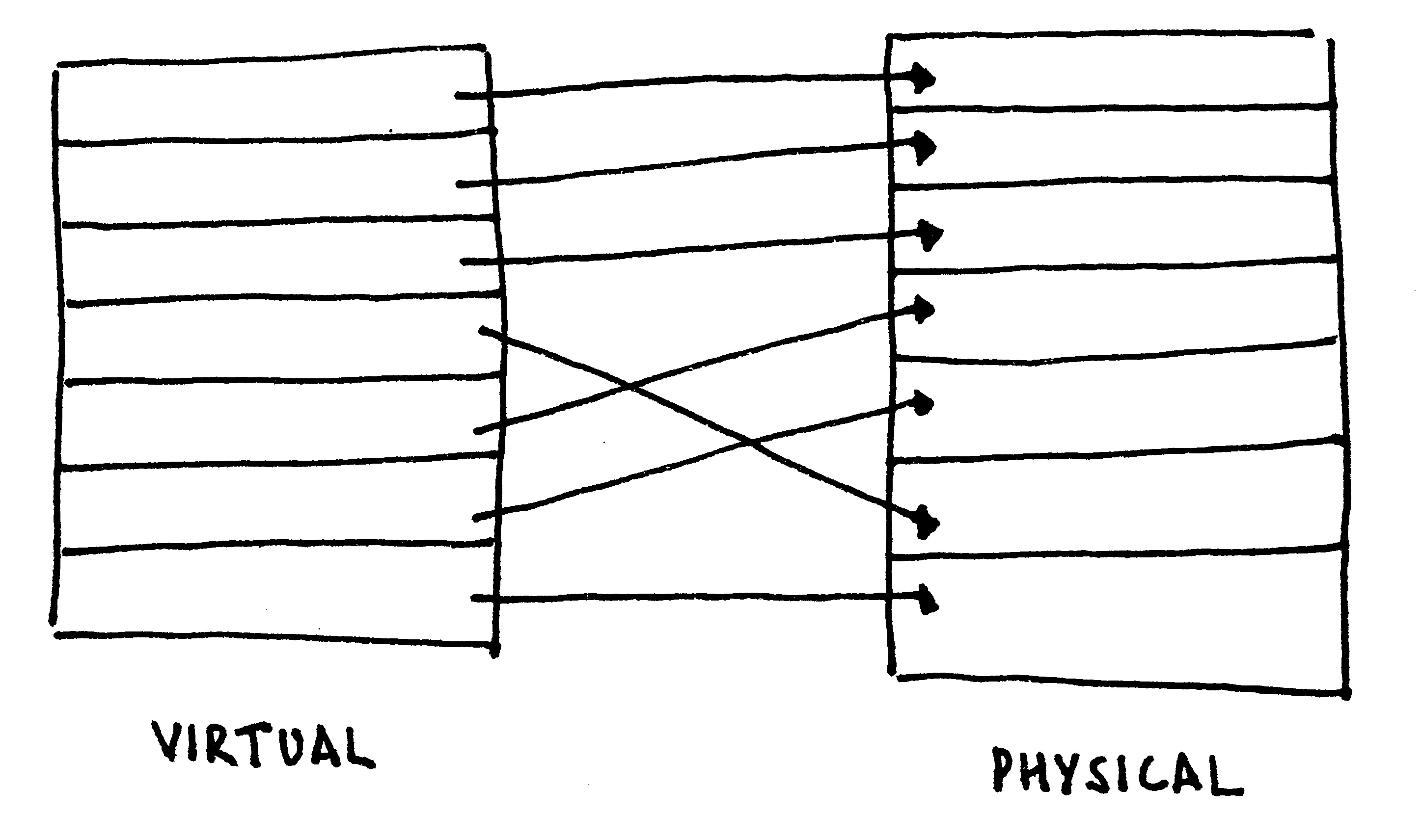 To brush up the concept of virtual memory, follow along with the hand-drawn illustration in the figure below.