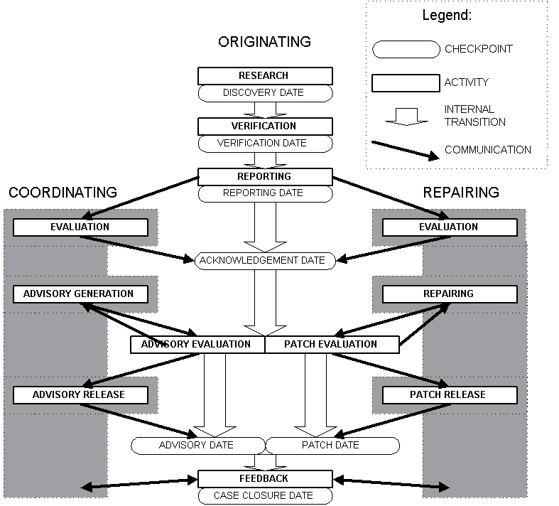 The life-cycle of a vulnerability case begins with the discovery of the defect and terminates after all aspects of the problem have been properly resolved. Communication is required between different actors with potentially conflicting roles. These actors, roles and activities form the vulnerability process, which ultimately aims to complete the life-cycles of the vulnerability cases in an orderly manner.