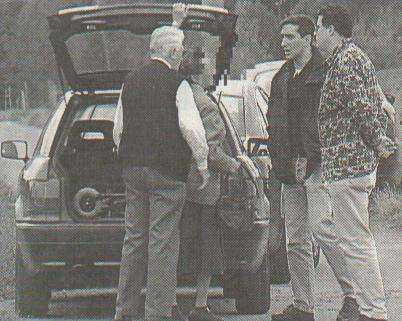 | From left to right, Mr. and Mrs. Julius Viel confronted by Steven Rambam and reporter Eric Friedler. This publicity stunt attempted to discompose Julius Viel, to provide him with the opportunity to blurt out something ill-advised that could be quoted to his discredit, and to provide a photo opportunity to bolster Rambam's credentials as a Nazi hunter. As Mrs. Viel is not a party to the proceedings, the photograph masks her features. |