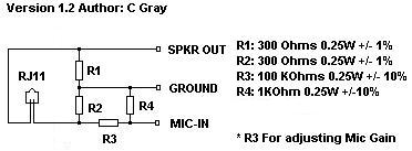 Because the Line-In input is used, the attenuation that I designed into the voip adapter reduces the mic level too much and hence Greg had to remove R3. My Ensoniq ES1370 audio card does not have that 10db boost, so I use the Mic-In input with the attenuator.