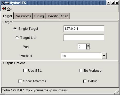 (3) Hydra start and output [0x06] The Art of Downloading: Source and Binaries For your pleasure, Hydra comes as source and binary release. 1. The source code of Hydra: hydra-5.4-src.tar.gz (compiles on all UNIX based platforms - even MacOS X, Cygwin on Windows, ARM-Linux, etc.) 2. The Win32/Cywin binary release: hydra-5.4-win.zip (everything you need to run hydra on win32 platforms is in this zip file) 4. The ARM binary release: hydra-4.5-arm.tar.gz (created by tick (at) thc (dot) org - everything except SAP R/3 is supported, runs on all Handhelds with ARM processors running Linux, e.g. iPaq, Zaurus, etc.) 3. The Palm binary release: hydra-4.6-palm.zip (created by snakebyte (at) gmx (dot) de - does not support all attack modules yet) [NOTE: the Palm release has got a different source tree. Therefore not all] [ modules are supported, and updates are not very often. ] Comments and suggestions are welcome. Yours sincerly, van Hauser The Hackers Choice http://www.thc.org
