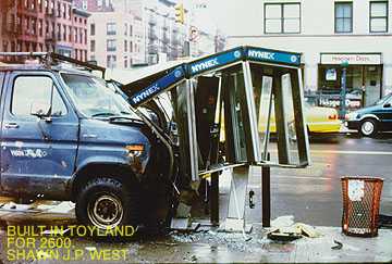 Someone photographed the aftermath of a van crashing into three NYNEX payphones in New York City.  But we couldn't just print that.