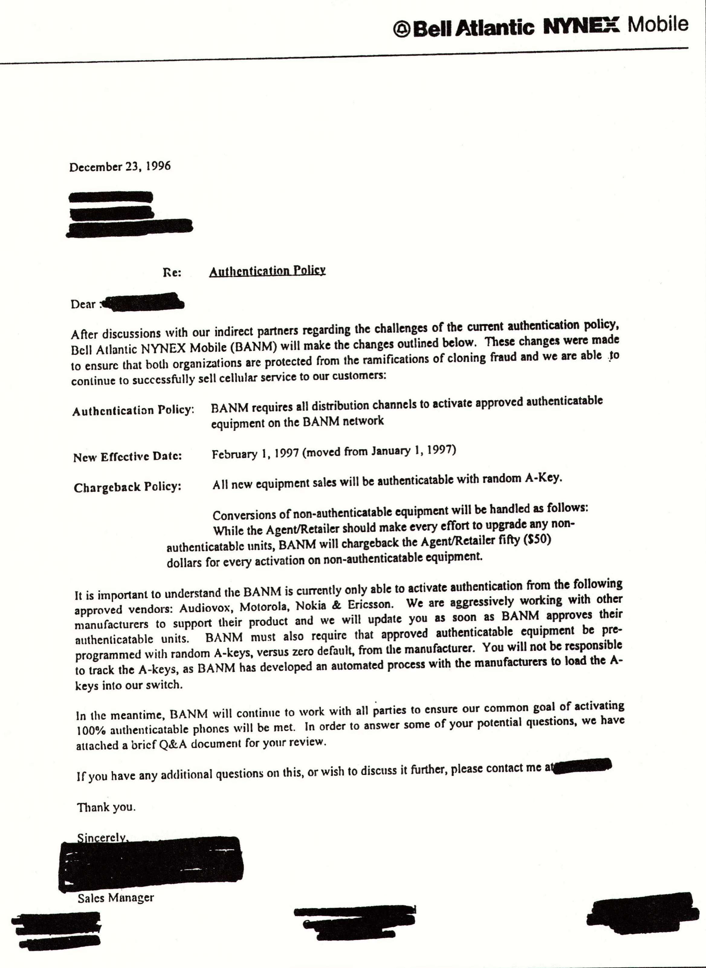 This little memo is being passed around to our favorite cellular company's vendors along with "proprietary and confidential" explanations of this system called "Authentication."