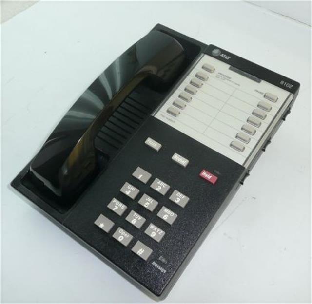 Let's start with the AT&T 8102. This is your standard non-display type phone with a series of 10 buttons arranged in pairs. These are your programmable buttons. They usually contain three outside lines, and the rest are usually just different departments, or if you're really lucky one of them is for the paging system. (I'll explain more about that in a minute.) The three lines that are for outside calls on these phones are for incoming only. Most of them have a block on the lines that won't allow you to get an outside dial tone but will allow you to pick up an outside call. But you can dial 911 just by picking up and hitting 9 for a dial tone, then 911.