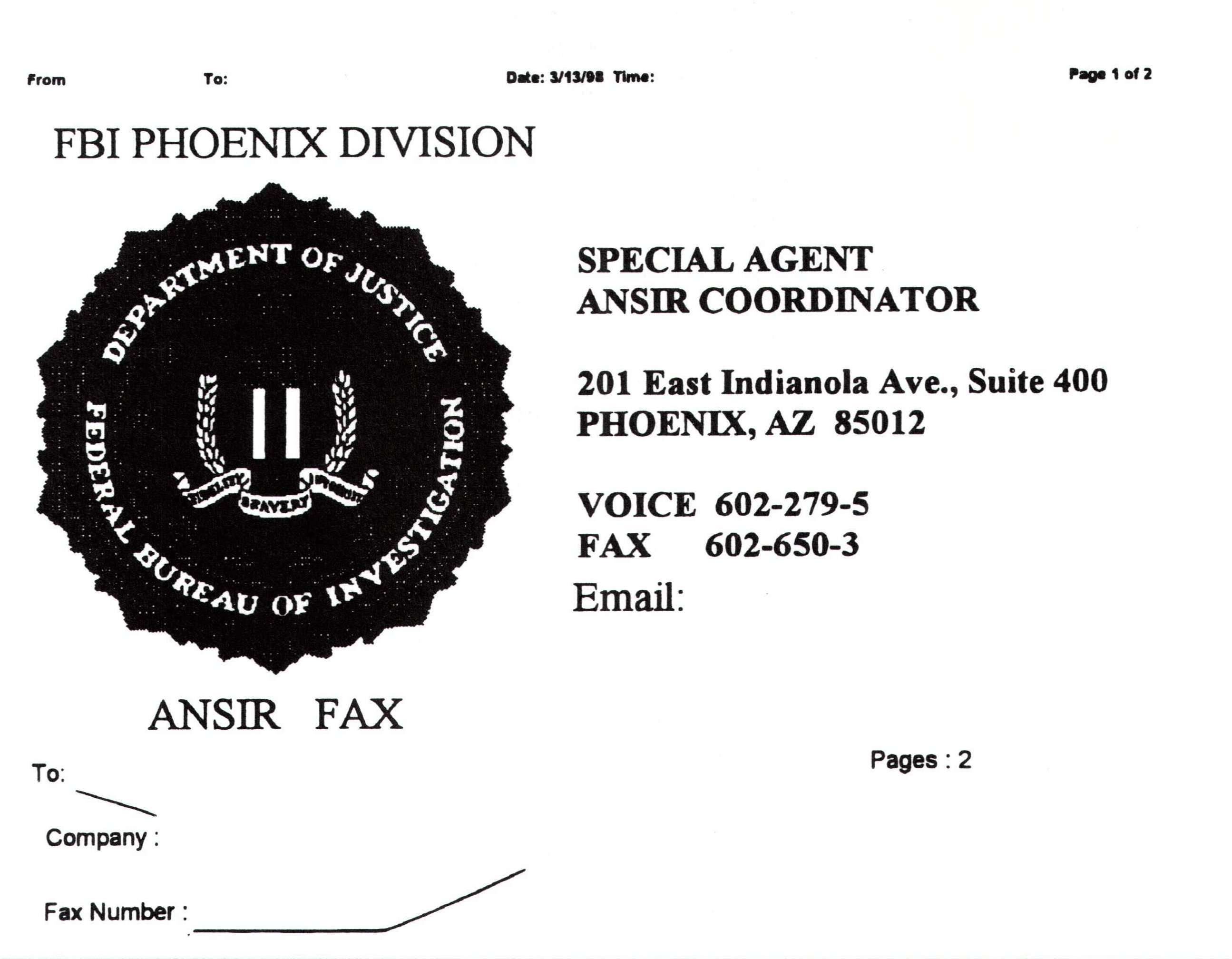 Although unclassified, this ANSIR-FAX computer advisory should be handled as "Sensitive." It is intended for use by corporate security professionals and law enforcement and should not be further disseminated outside of the corporate security and law enforcement environment nor should it be furnished to the media. Unauthorized disclosure of FBI communications could jeopardize ongoing FBI investigations.