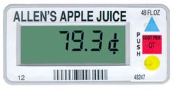 Their price tags come in various shapes and sizes, sometimes with one LCD display and sometimes two. In my local supermarket for instance, smaller items like spices and condiments have small displays; larger products like paper towels have larger tags. Some even have hidden buttons that display additional information (product UPC codes in my limited experimentation) when pressed.