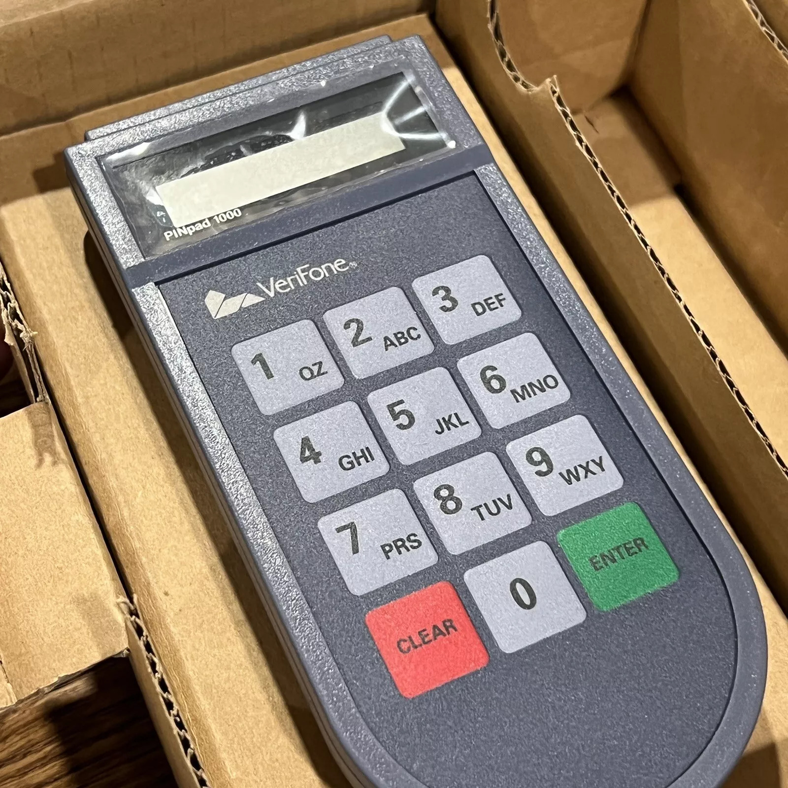 The first piece of POS hardware is the Verifone PINPad 1000 (Part No. P003-116-09).