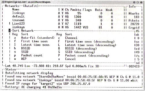 To gather the data for the cover we used a Cisco card, mag-mount antenna on the roof, a Garmin GPS, and Kismet.