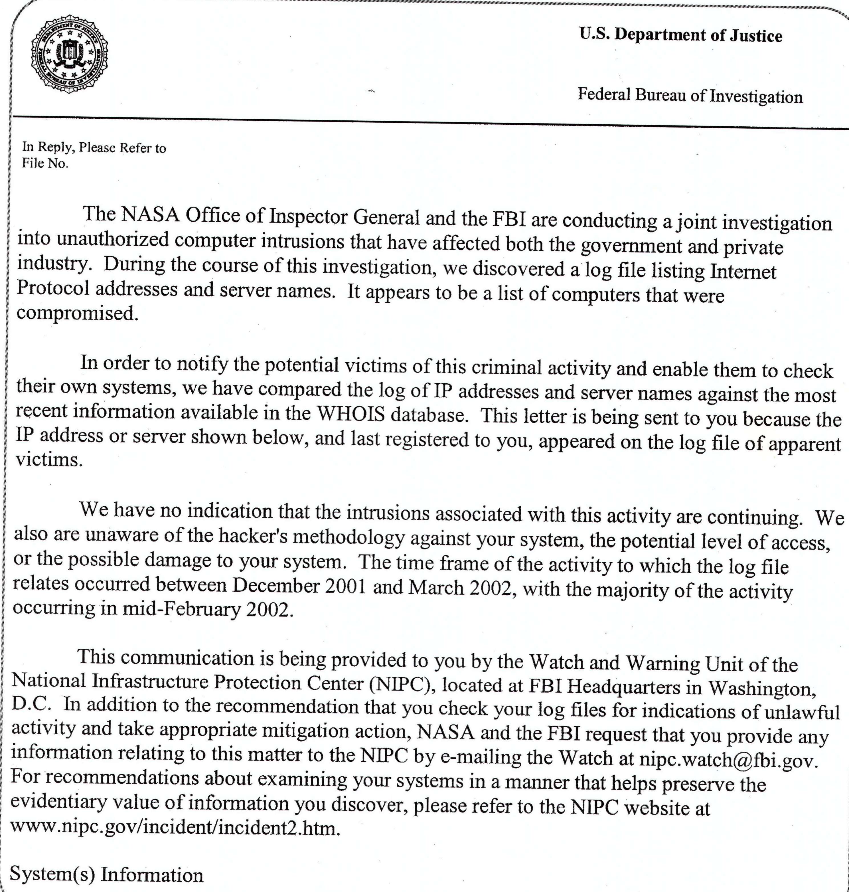 The kicker of this is that both the contact and domains referenced had nothing to do with us and we were apparently sent this letter in error. Yet more wasted time and resources. (The Watch and Warning Unit?!)
