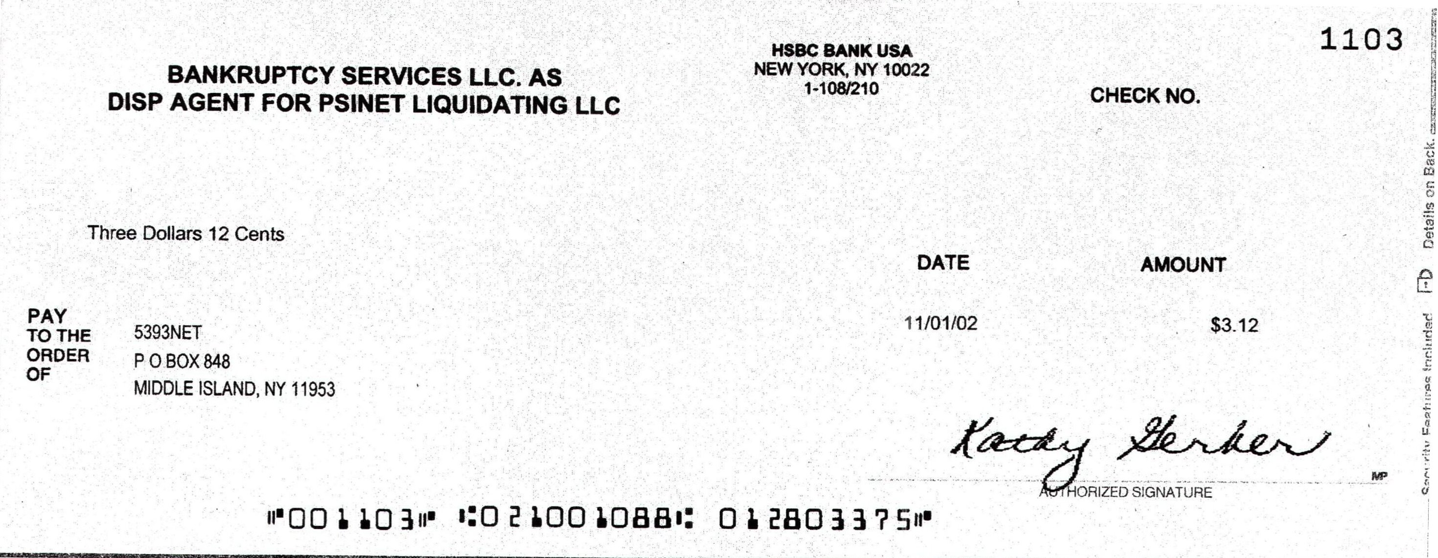 For some reason we wound up on their list of creditors and eventually received this check. They also managed to rename us from 2600 to "5393".