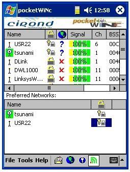 pocketWiNc is not the fastest scanner but it can connect to APs quickly. It also automatically detects if there is an Internet connection present in the access point as well as if there is a WEP key configuration. pocketWiNc also provides multiple network diagnostic tools.