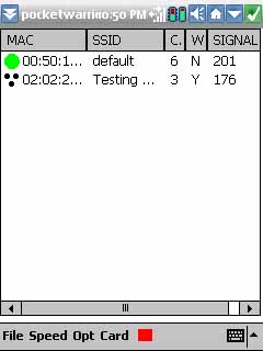 Pocket Warrior is almost identical to MiniStumbler with the exception that it supports PRISM cards and some ORiNOCO cards compared to MiniStumbler which only supports ORiNOCO cards. However, some PRISM cards' drivers may not be supported. So I suggest downloading the Intersil Reference Driver available courtesy of Net-Troy: www.net-troy.com/drivers