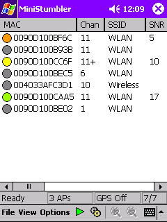 MiniStumbler is the Pocket PC counterpart to the famous Stumbler program called NetStumbler. This program is a great wardriving tool because it is very fast and reliable for finding access points. If you have a GPS card on your Pocket PC, it maps the AP's location. It will even inform you of the exact longitude and latitude of your position standing from the AP.