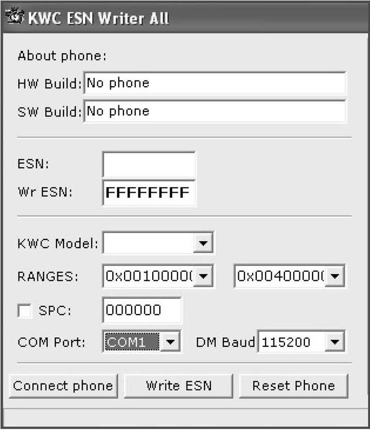 For the software we will be using a program called "KWC ESN Writer All" (again, try Google/Yandex). This program will change the ESN on the models named above.
