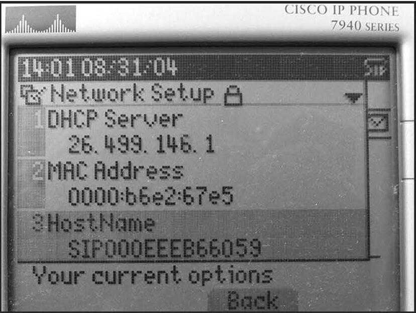 Get the IP address, hostname, and TFTP server for each phone by pressing the configuration button (the one with the picture of the check box) and selecting Network Configuration.