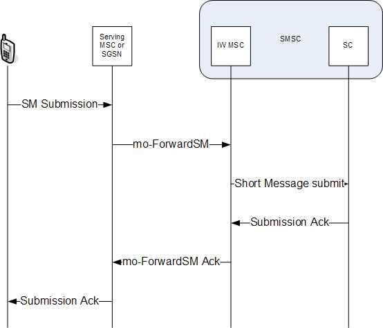 Note that the SMS protocol accounts for the unreliability of wireless networks by using an acknowledgment sequence.