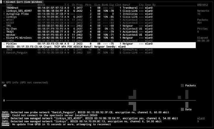 Among other key new features, Kismet sports a completely redone UI. While still in curses text mode (hey, I like curses, I curse all the time), the new user interface is widget-based and dynamically reconfigurable.