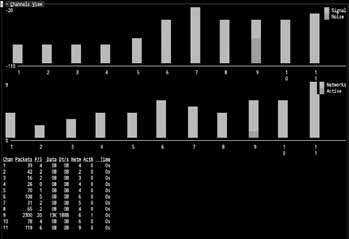 #!/bin/bash echo -e '\n!0 enable channel channel,networks' | nc localhost 2501 | awk 'BEGIN { CHN = 0; }; /CHANNEL:/ { chnum[CHN]=$2; chval[CHN]=$3; CHN=CHN+1; }; /TIME/ { if (CHN != 0) { printf("["); for (x = 0; x < CHN; x++) { printf("{\"id\":%s,\"value\":%s}", chnum[x], chval[x]); if (x < (CHN-1)) printf(",") } printf("]\n"); CHN=0; fflush("");} };' | while read line; do echo "$line" > channel.json; doneWhich is the quick-and-dirty way of converting the Kismet channel usage report (in this case, number of networks per channel) into a JSON file for displaying channel usage in Ajax. Similar magic can be done to extract active networks in the vicinity, GPS location, IDS alerts, and any other data collected by Kismet.