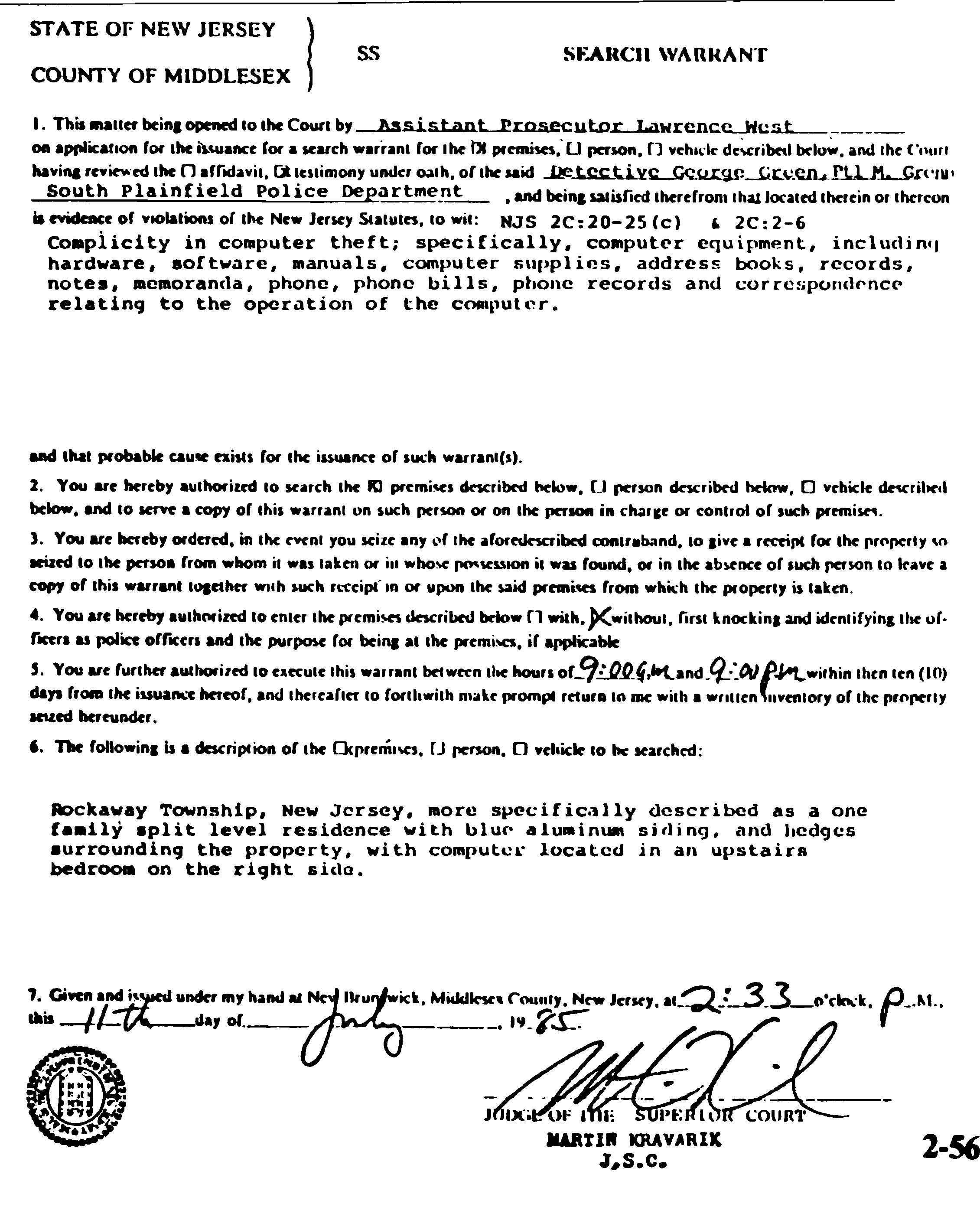 Police had uncovered in April a credit carding ring operated around a Middlesex County electronic bulletin board, and from there investigated other North Jersey bulletin boards. Not understanding subject matter of the Private Sector BBS, police assumed that the sysop was involved in illegal activities. Six other computers were also seized in this investigation, including those of Store Manager who ran a BBS of his own, Beowolf, Red Barchetta, the Vampire, NJ Hack Shack, sysop of the NJ Hack Shack BBS, and that of the sysop of the Treasure Chest BBS.