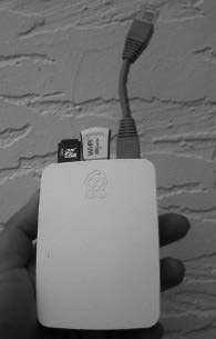2.) Write the decompressed img file to a microSD card. With Linux, the built-in dd program works great. Just specify the img file with if= and the microSD card in a flash reader/writer should be something like of=/dev/sdb. Under Windows, you'll need a flash card writing program. Follow the Raspbian instruction if you don't already have one. You may also want to expand the root file system to fill your card at this point, as you can't do it while running the OS.