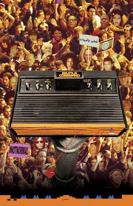 There's a lot going on here. The Atari logo was replaced with a red and blue logo that said TRAUMA, something many of our readers were experiencing with the election results.