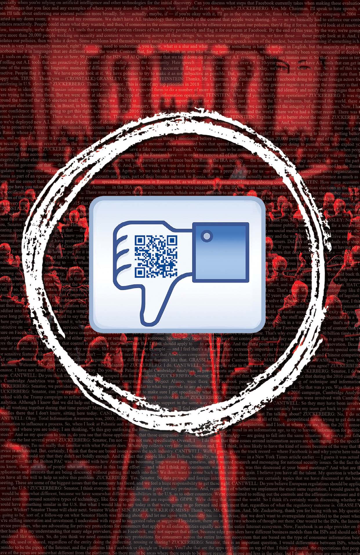 This was surrounded by a hand drawn circle and an image of Congress, along with parts of Zuckerberg's Senate testimony printed in the background.