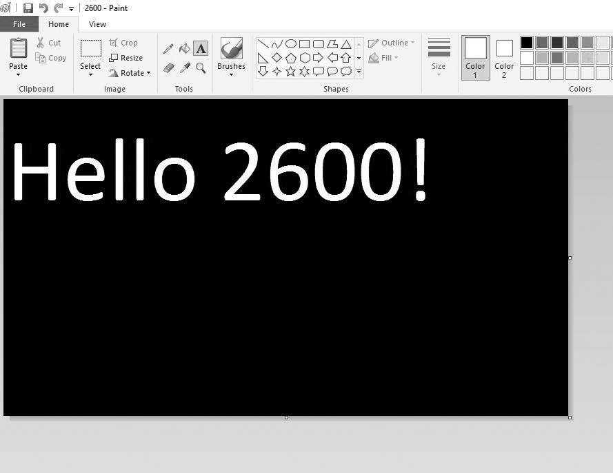 Figure 3: Using Microsoft Paint to type a message with a black background and white lettering.Save the BMP image.
