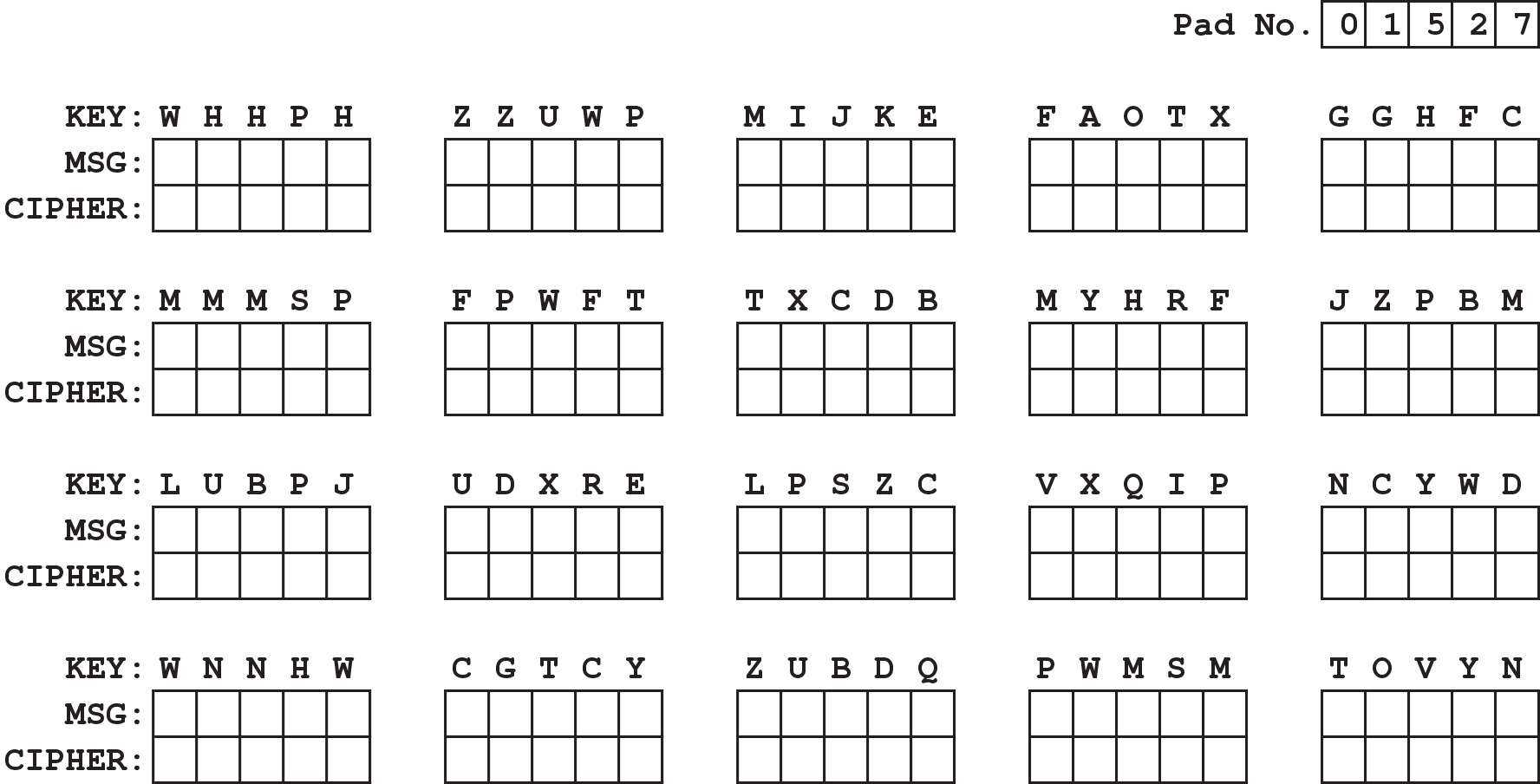 Most one-time pads used by forward military units have 20 or 25 groups per page.