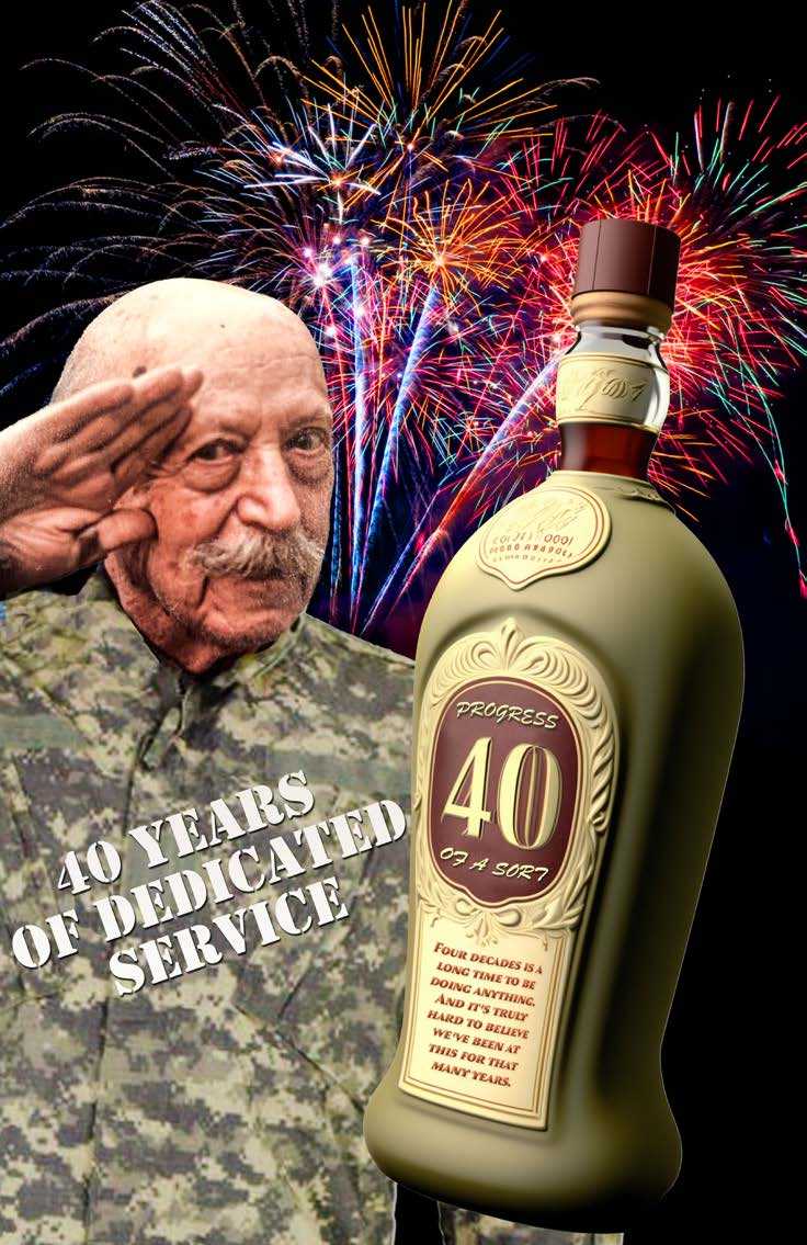 The bottle has a big "40" printed on it, an allusion to both our anniversary and the popular 40 ounce bottles of malt liquor (which, coincidentally, began to get popular around 40 years ago).
