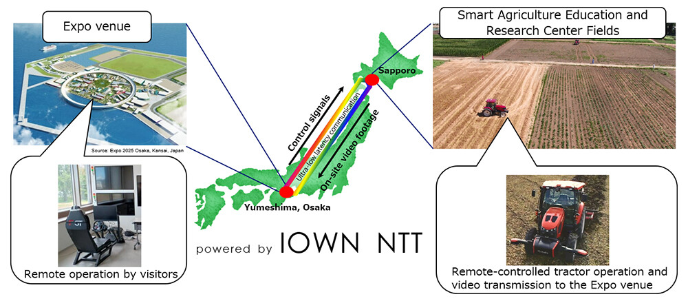 One demo enables remotely driving a robotic tractor located about 1,600 kilometers away from the Expo venue. This might not seem like a super complicated problem on the surface, but it requires a ton of bandwidth for high definition video. Latency has to be super low because you're actually steering a giant machine; response has to be reliable and can't be sluggish. And you need spatial awareness which is another tough problem - this has to be calculated and communicated in real-time, and also with incredibly low latency. Surprisingly, everything works. It's one of those scenarios that is "almost there" with traditional IP-based networks, but fully there with IOWN and it's incredible to witness in action.