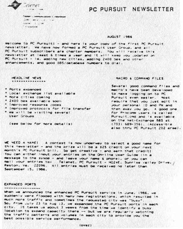 Some of you may recall back in the early days, PC Pursuit had a rather unique system. You dialed a special number and entered all of your personal information - ID code, password, and number you wanted to reach. PC Pursuit would then hang up and call you back at a predetermined number.