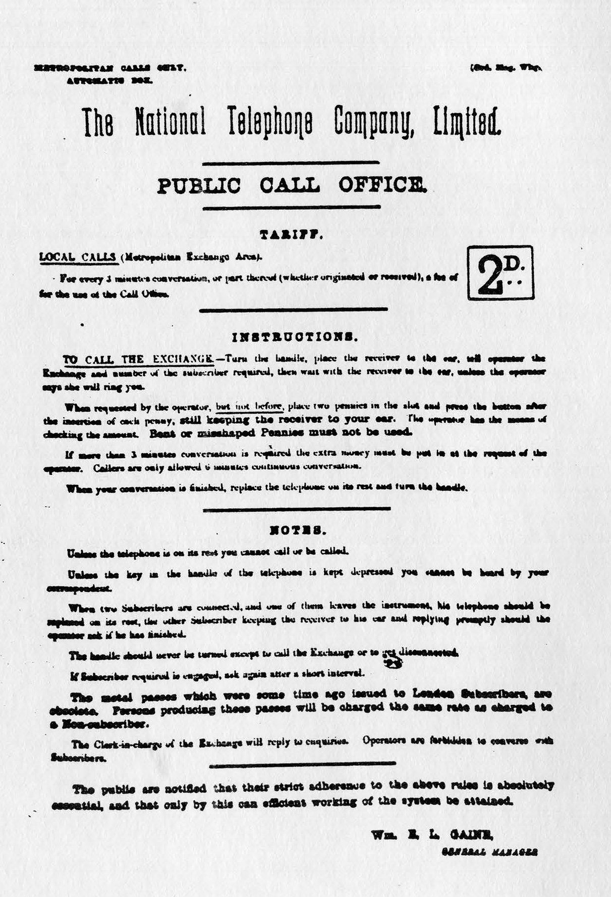 A caption underneath identified it as part of the "National Telephone Company" (England) and revealed the rates of the time.