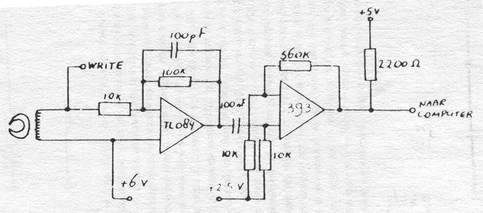 At the left of Schematic #1 you will see the read head. For this (as well as the write head) you cannot use any cassette player head which happens to be lying around. You will need to use a data head or a card reader head (you can obtain them from Michigan Magnetics among others).